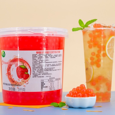 स्ट्रॉबेरी पोपिंग बोबा स्ट्रॉबेरी रस का रस पॉपिंग बॉल 3 किलो जार